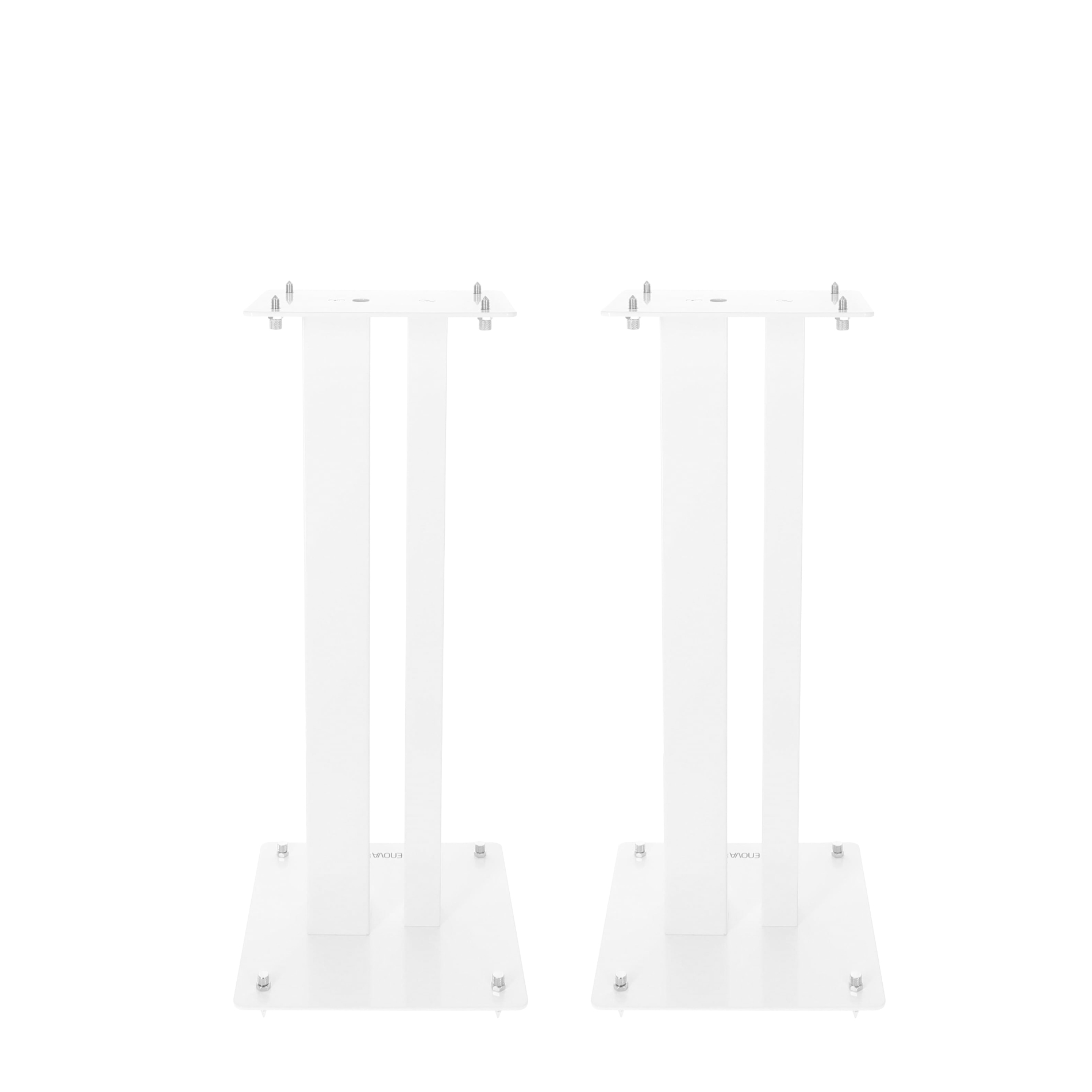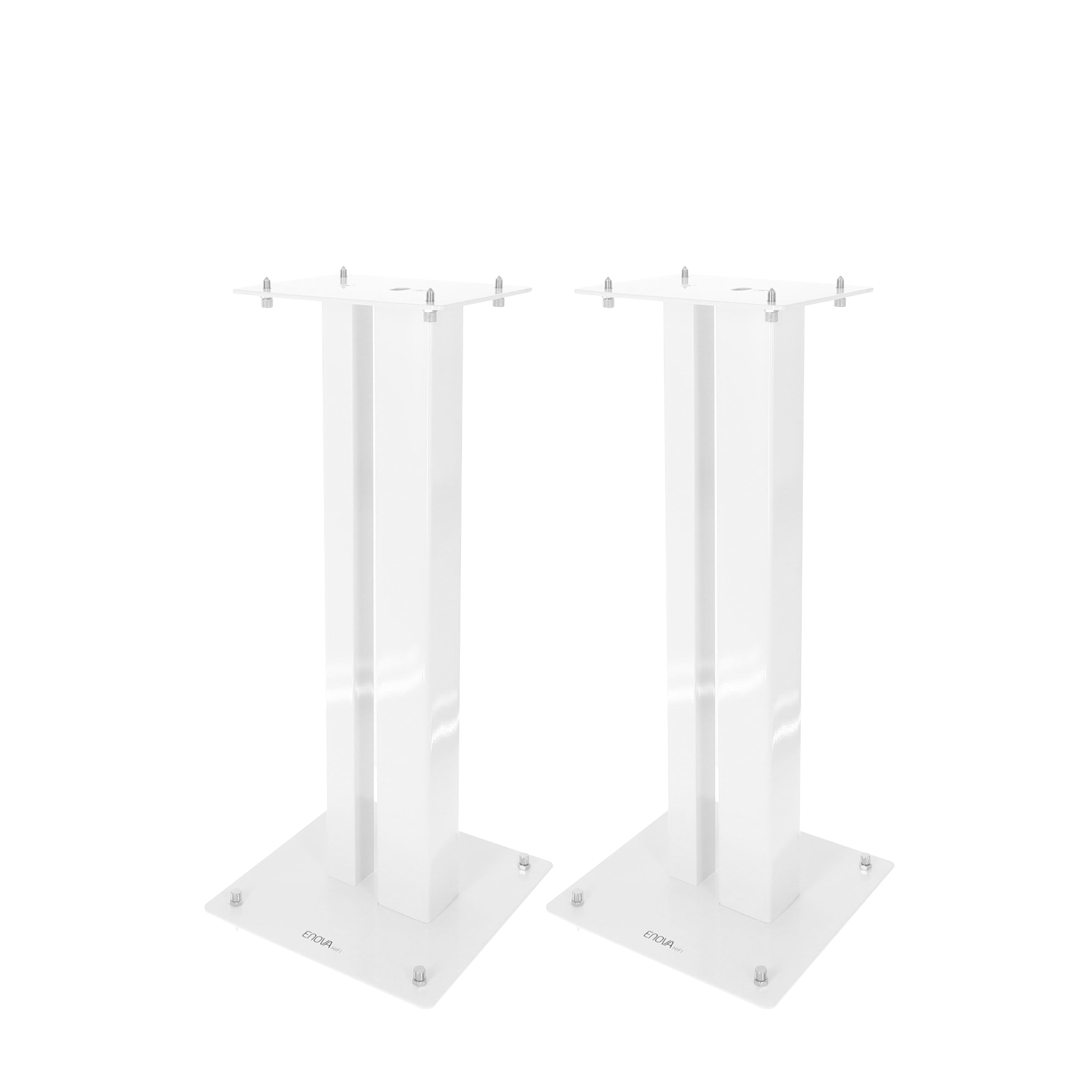 - Hauteur : 60 cm- Dimension de la base inférieure : 26 x 26 cm- Dimension de la base supérieure  : 17 x 22,5 cm- Taille du grand tube : 60 x 60 mm- Taille du petit tube : 34 x 34 mm- Épaisseur de la base inférieure et supérieure : 4 mm- Charge maximale : 70 kg- Matériau : acier- Finition : blanc- Livré par paire- Poids de la paire : 22,30 kg