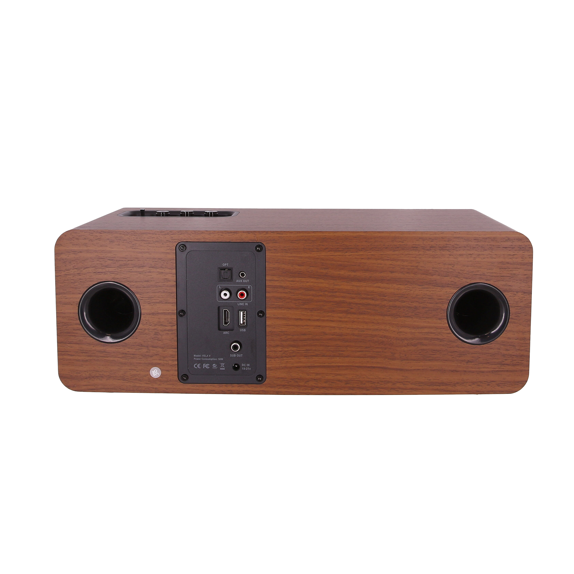 - Enceinte multimédia dotée de diverses connexions- Télécommande multifonctions- Puissance : 50W, 70W Max- 2 Woofers 4?? et 2 tweeters 1,25?? - Bande passante : 45Hz ? 20KHz - Distorsion : < 1%- Entrées : RCA x 2, Optique x 1, USB x 1, HDMI ARC x 1, AUX Jack stéréo 3,5mm- Récepteur Bluetooth- Sorties : SUB OUT x 1 et HDMI ARC x 1- Corrections : Grave et Aigu +/- 6 dB- Bouton ON/OFF- Alimentation externe fournie- Câble RCA/Jack Stéréo 3.5mm et Optique inclus- Dimensions : 431 x 150 x 170mm- Poids total : 3,5 Kg
