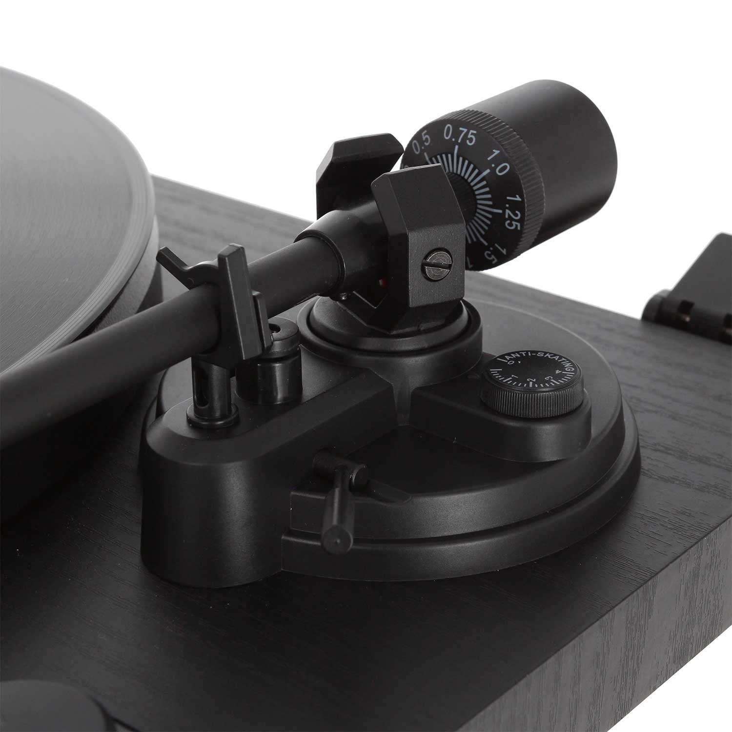 - Platine vinyle Hifi à courroie- Amplification intégré 2 x 30W RMS pour alimenter les enceintes fournies- 2 Enceintes passives 2 voies- Plateau en acier 280mm- Cellule magnétique fournie : Ortofon OM 5E- Boutons de réglage de volume, Start /Stop et de sélection 33/45T- 2 vitesses : 33 1/3 et 45 RPM- Fonction Anti-skating- Pleurage et scintillement : 0.15%- Signal bruit: 72 dB- Force d?appui du diamant réglable : 1,50 à 1,75 gr- Longueur du bras de lecture: 218,5 mm- Réponse en fréquences : 20 - 20 000 Hz : +2/-3 dB- Distorsion d'intermodulation : <1%- Capacité de lecture à 315Hz : 65 ?m- Compliance latérale : 20 ?m/mN- Impédance : 750 ohms- Connexion pour cellule à diamant mobile- Charge recommandée: 47 kohms / 200 à 600 pF- Connectiques : Sortie RCA line/phono, Récepteur Bluetooth, port USB afin de pouvoir numériser vos vinyles, borniers haut-parleurs, alimentation 12V DC et écrou de mise à la masse- Préampli RIIA, niveau line/phono au choix par sélecteur- Accessoires inclus : centreur, contre-poids X2, capot de protection, câble USB, transfo d?alimentation 12V, adaptateur 45 RPM, feutrine de protection, câbles HP- Bouton ON/OFF sur face arrière- Récepteur BT- Dimensions (L x H x P) : 418 x 123 x 346 mm / capôt ouvert : 420 x 410 x 420 mm- Poids : 8,4 kgEnceintes - Enceintes 2 voies- Puissance RMS/PROG: 30W, 60W- Cache de protection HP en tissu Noir- Dimension: 162 x 248 x 158 mm- Taille du tweeter : 5 cm- Taille du haut parleur grave : 11,5 cm- Poids unitaire : 1,86 kg- Poids total : 3,72 kg Poids total : 12,12 kg
