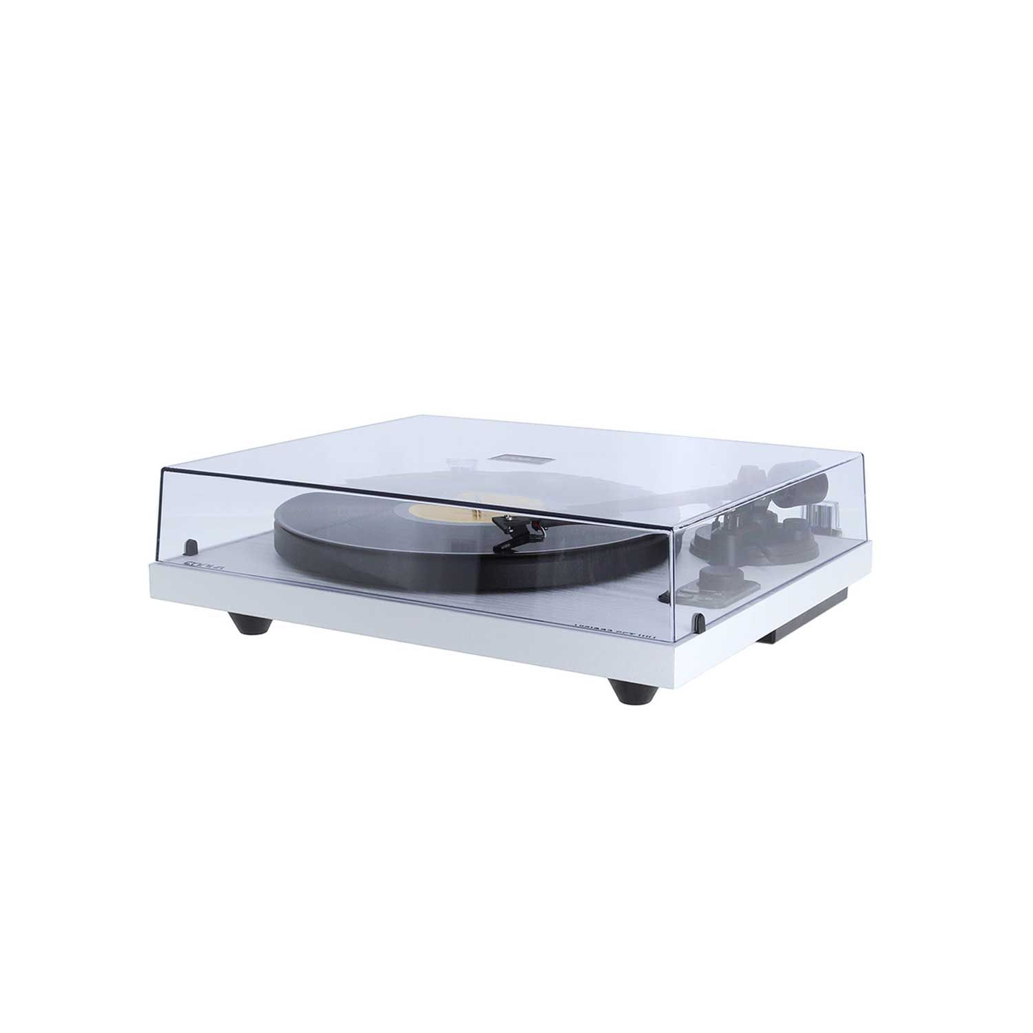 - Platine vinyle Hifi à courroie- Amplification intégré 2 x 30W RMS pour alimenter les enceintes fournies- 2 Enceintes passives 2 voies- Plateau en acier 280mm- Cellule magnétique fournie : Ortofon OM 5E- Boutons de réglage de volume, Start /Stop et de sélection 33/45T- 2 vitesses : 33 1/3 et 45 RPM- Fonction Anti-skating- Pleurage et scintillement : 0.15%- Signal bruit: 72 dB- Force d?appui du diamant réglable : 1,50 à 1,75 gr- Longueur du bras de lecture: 218,5 mm- Réponse en fréquences : 20 - 20 000 Hz : +2/-3 dB- Distorsion d'intermodulation : <1%- Capacité de lecture à 315Hz : 65 ?m- Compliance latérale : 20 ?m/mN- Impédance : 750 ohms- Connexion pour cellule à diamant mobile- Charge recommandée: 47 kohms / 200 à 600 pF- Connectiques : Sortie RCA line/phono, Récepteur Bluetooth, port USB afin de pouvoir numériser vos vinyles, borniers haut-parleurs, alimentation 12V DC et écrou de mise à la masse- Préampli RIIA, niveau line/phono au choix par sélecteur- Accessoires inclus : centreur, contre-poids X2, capot de protection, câble USB, transfo d?alimentation 12V, adaptateur 45 RPM, feutrine de protection, câbles HP- Bouton ON/OFF sur face arrière- Récepteur BT- Dimensions (L x H x P) : 418 x 123 x 346 mm / capôt ouvert : 420 x 410 x 420 mm- Poids : 8,4 kgEnceintes - Enceintes 2 voies- Puissance RMS/PROG: 30W, 60W- Cache de protection HP en tissu Noir- Dimension: 162 x 248 x 158 mm- Taille du tweeter : 5 cm- Taille du haut parleur grave : 11,5 cm- Poids unitaire : 1,86 kg- Poids total : 3,72 kg Poids total : 12,12 kg