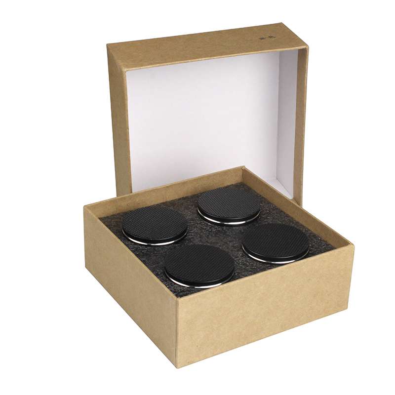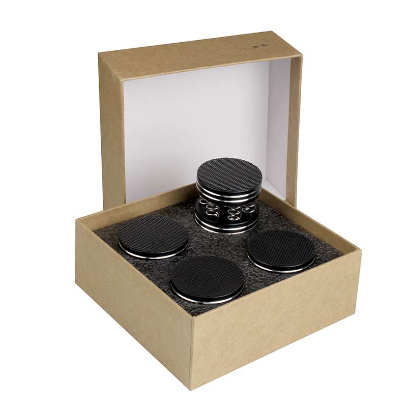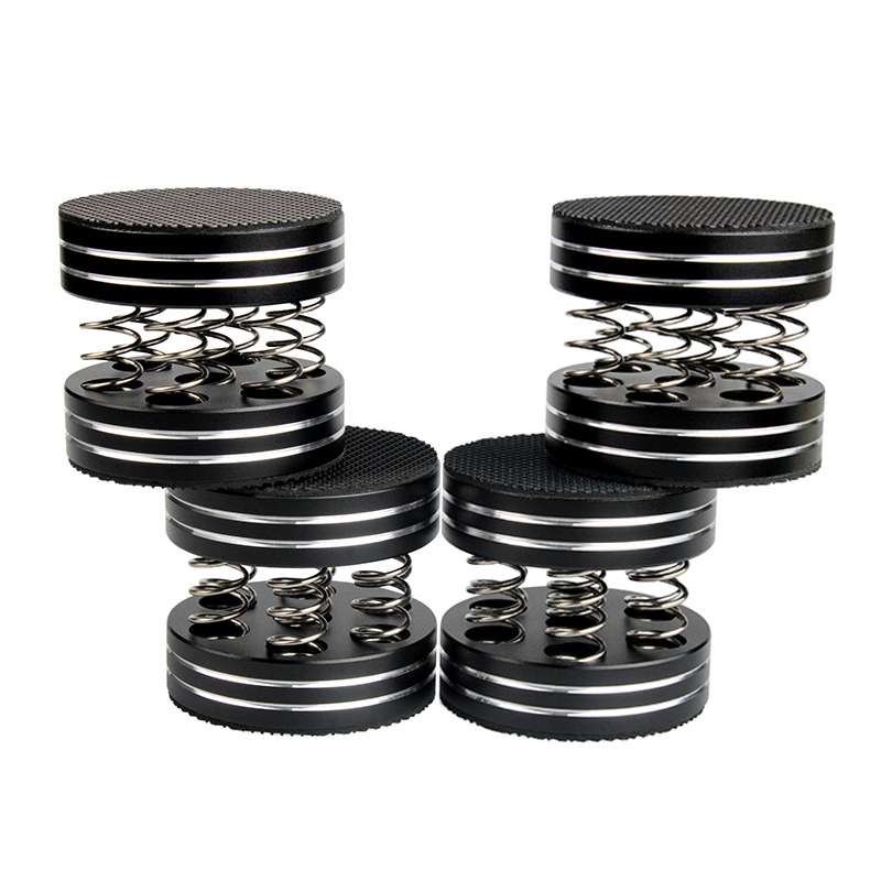 - Livrés par 4 dans une boite- Conception : alliage d?aluminium, ressorts en Inox et rondelles de caoutchouc - Dimensions : 45 x 40mm- Poids unitaire : 96 gr- Poids total : 487 gr