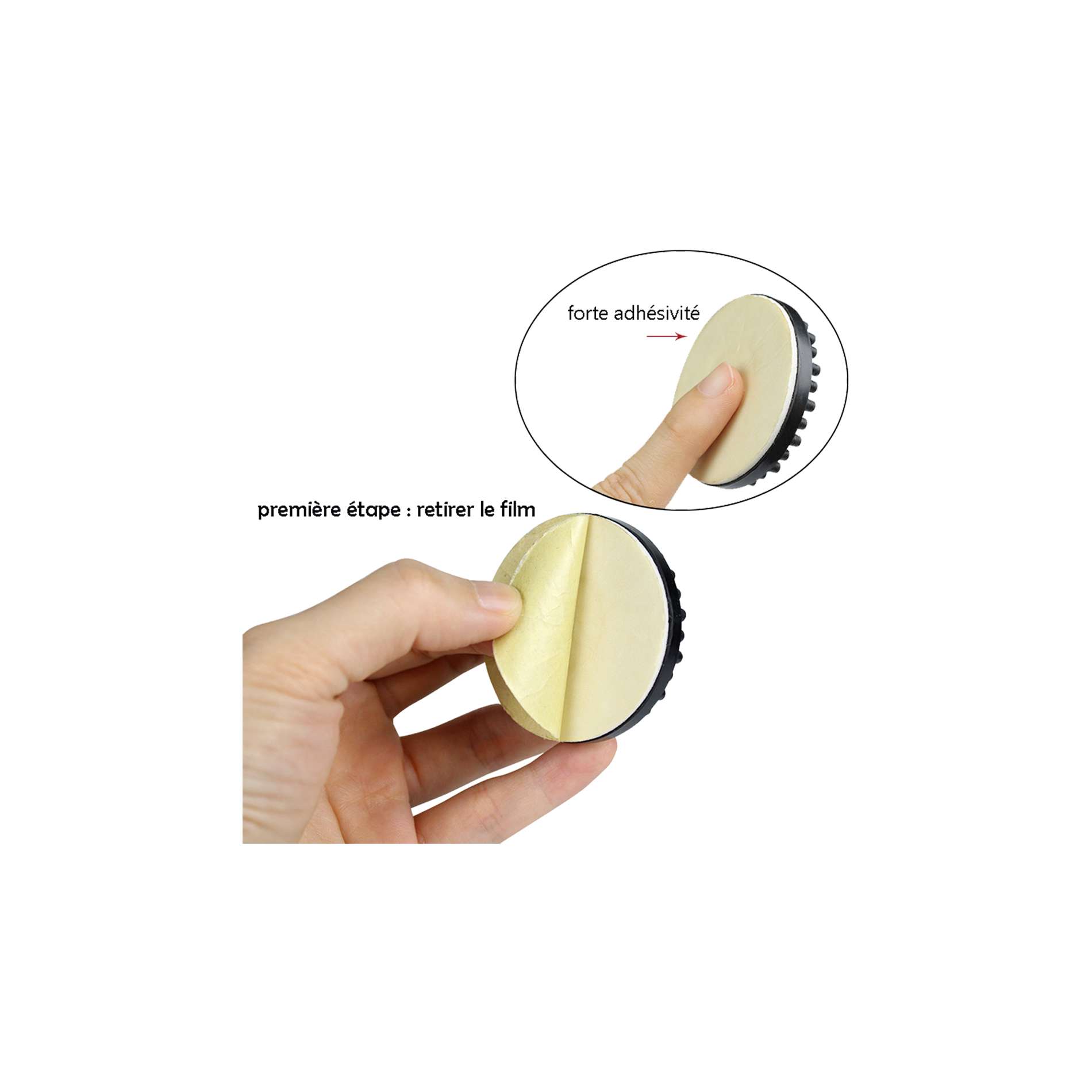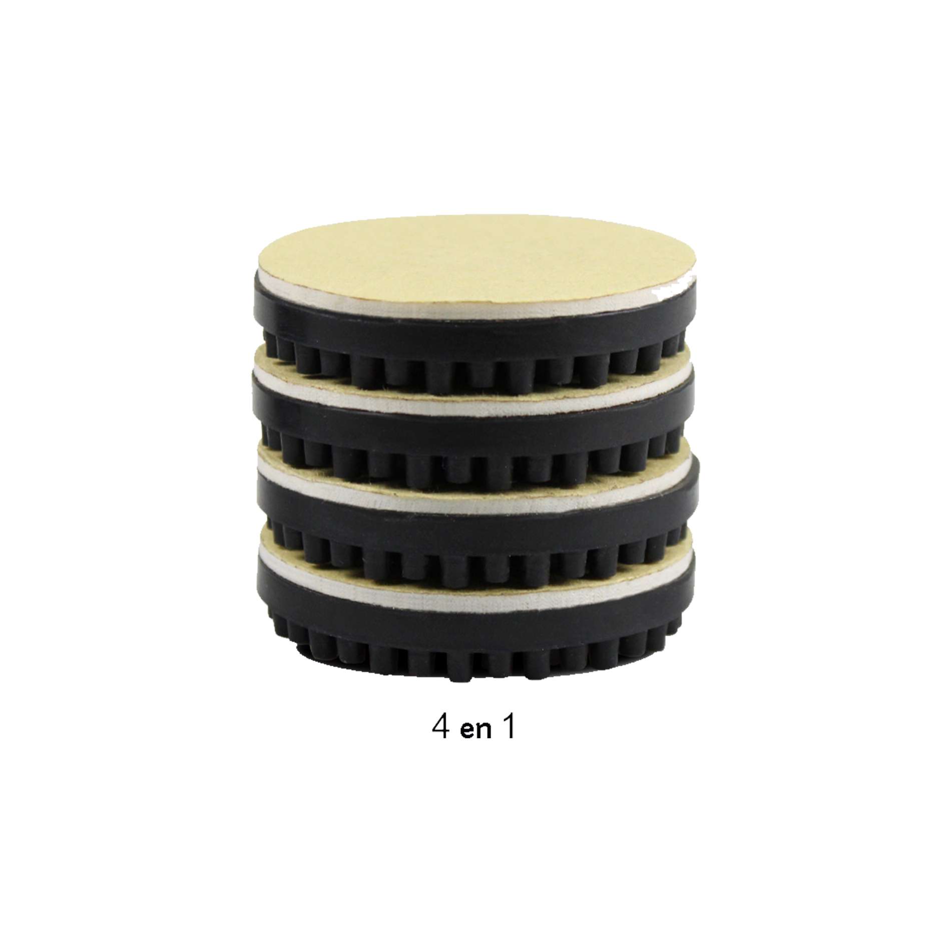 Caractéristiques techniques :- Vendu en set de 4 pour une platine vinyle- Matière : caoutchouc- Couleur : noir- Se colle sur les pieds avec le double face fourni- Dimensions : 10,5 x 53 mm- Poids : 15,5g par pièce