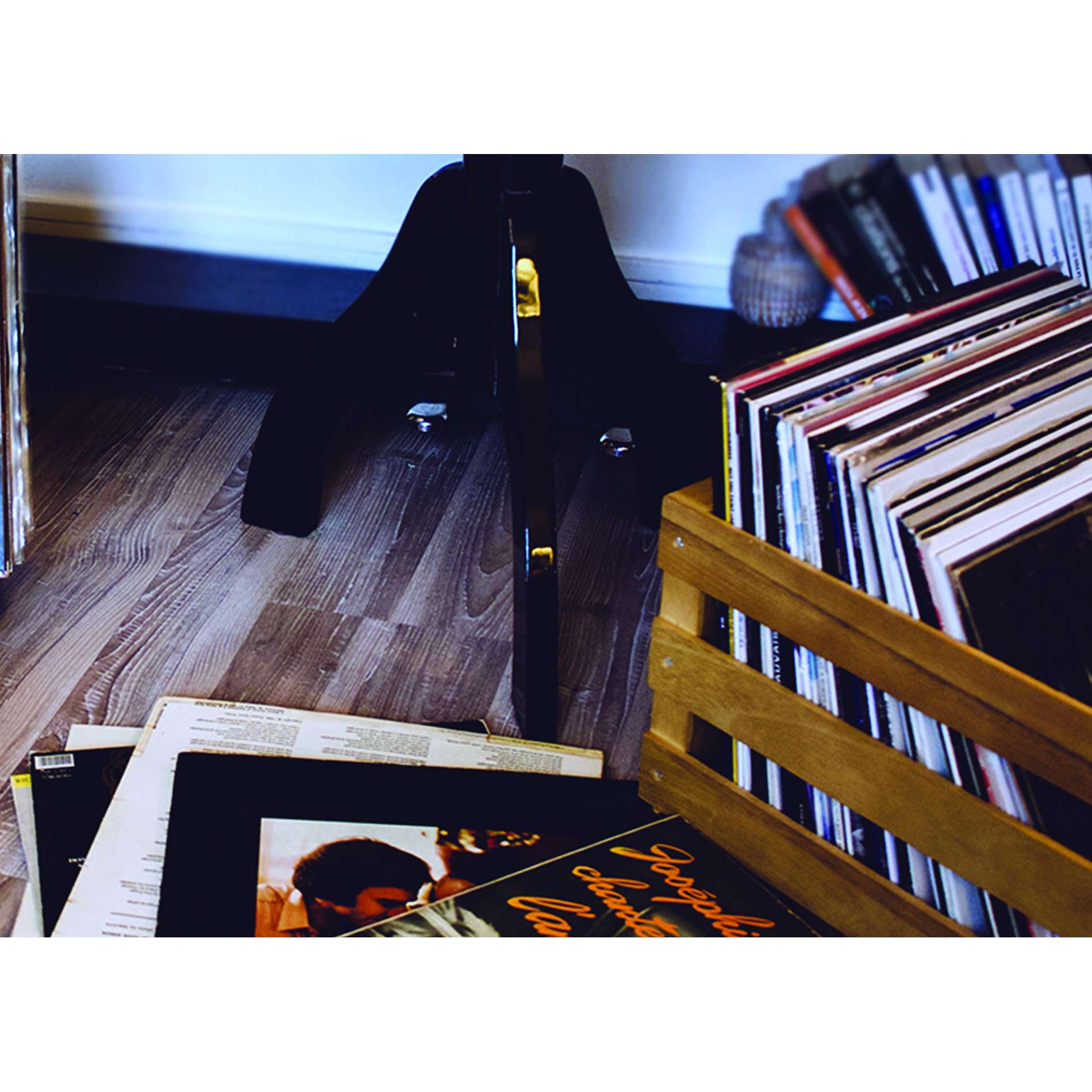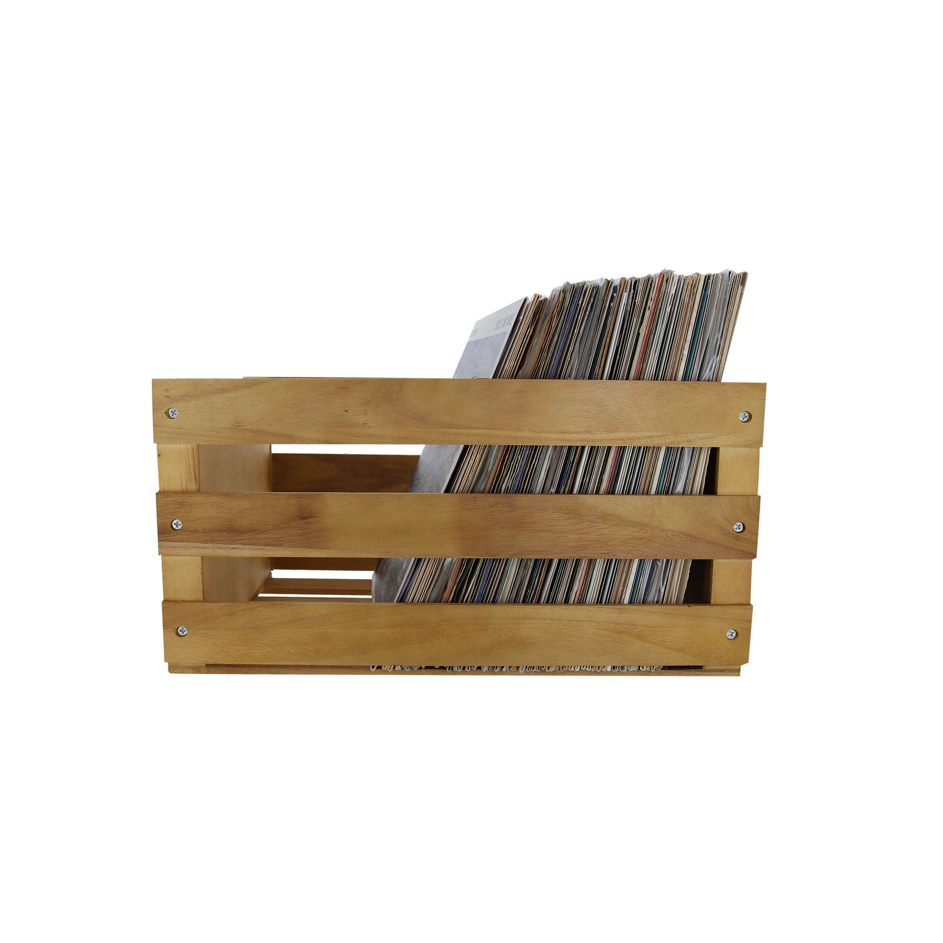 - Caisse de rangement vinyles en bois- Assemblage facile et pratique- Vis fournies- Capacité : 120 vinyles environ- Couleur : bois claire- Dimensions : 46 cm x 30,5 cm x 22 cm- Épaisseur : 7 mm- Poids : 2 kg