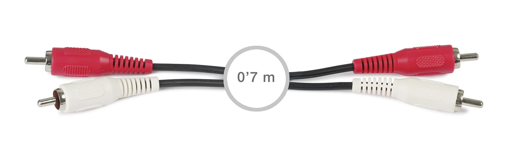 Cabo de áudio 2 RCA a 2 RCA Liga dispositivos de áudio com conetores RCA estéreo a outros dispositivos de áudio com conetores RCA estéreo. Conetores e cobertura de PVC muito resistente, condutor de cobre com comprimento de 0,7 m, garantindo uma transmissão sem perdas do sinal de áudio. Para ligações de áudio de nível de linha entre dispositivos com conetores RCA estéreo.