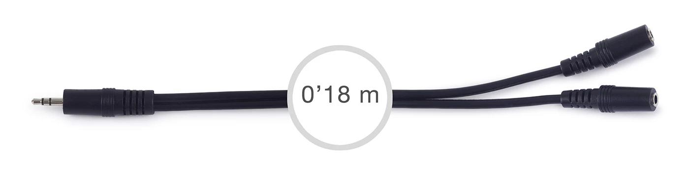 Cabo de áudio jack 3,5 mm macho a 2 jack 3,5 mm fêmea Liga dispositivos de áudio com conetores jack 3,5 mm estéreo a outros dispositivos de áudio com conetores jack 3,5 mm estéreo. Conetores e cobertura de PVC muito resistente, condutor de cobre com comprimento de 0,18 m, garantindo uma transmissão sem perdas do sinal de áudio. Para ligações de áudio entre dispositivos com conetores jack 3,5 mm estéreo.