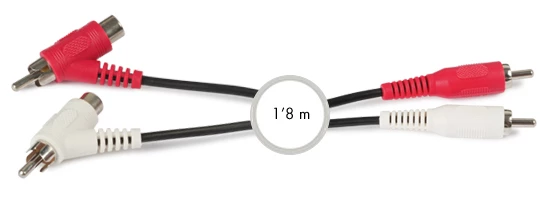 Cabo de áudio 2 RCA macho + adaptador fêmea a 2 RCA macho Liga dispositivos de áudio com conetores RCA estéreo a outros dispositivos de áudio com conetores RCA estéreo. Conetores e cobertura de PVC muito resistente com comprimento de 1,8 m, garantindo uma transmissão sem perdas do sinal de áudio. Para ligações de áudio de nível de linha entre dispositivos com conetores RCA estéreo.