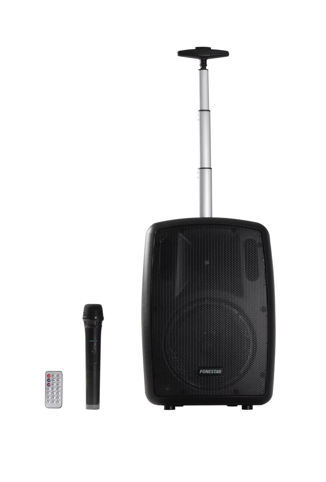 Coluna portátil Grande potência e qualidade de som proporcionadas pelo amplificador classe D de alta eficiência. Integra todos os elementos necessários para uma atuação ou conversa em direto: - 1 microfone sem fios de mão UHF - 1 entrada de microfone e entrada 1 auxiliar estéreo - Recetor Bluetooth® e reprodutor USB/MicroSD - Sintonizador digital FM com 40 pré-sintonias automáticas - Função eco e controlo de tons Transporte fácil graças ao carrinho de transporte trolley. É muito resistente ao transporte graças à sua construção robusta em injeção e incorpora orifício na base para instalação em tripé ou em suporte de parede. Inclui comando à distância para controlo remoto. Uma coluna muito versátil e adaptável a múltiplos usos. Para atividades ao ar livre, aulas de grupo, pequenas festas, eventos e espetáculos ambulantes.