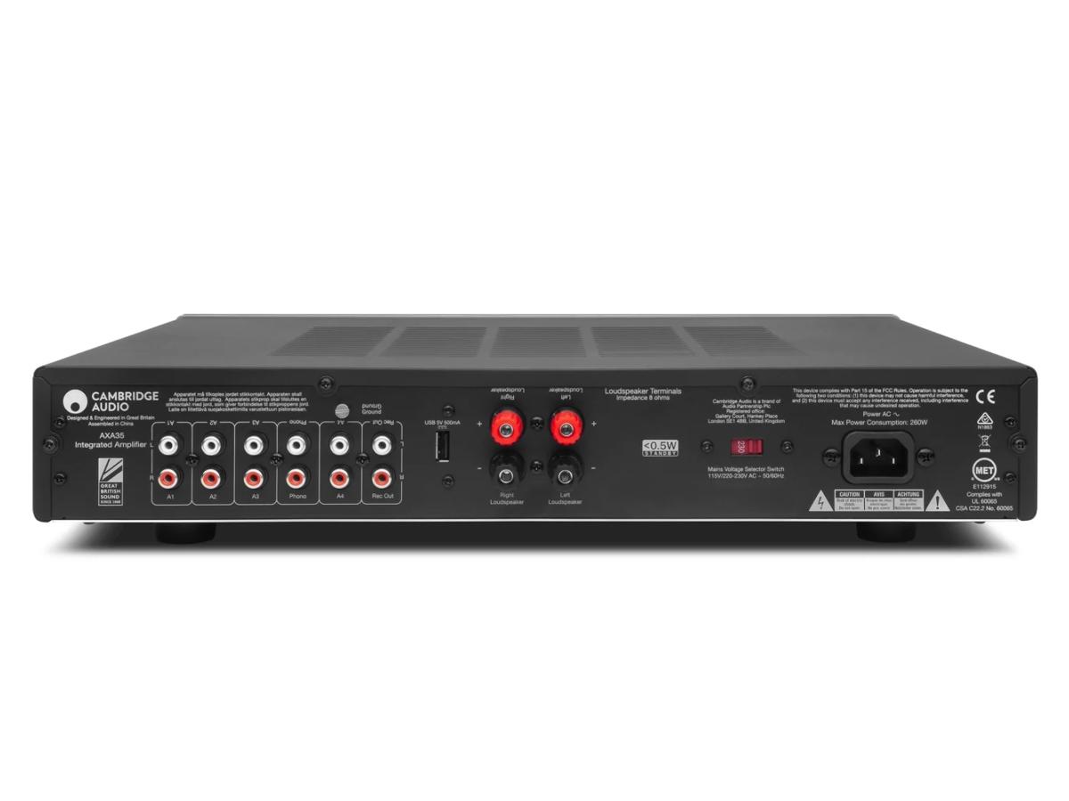 Home Amplificadores AX A35 - CAMBRIDGE AX A35 - CAMBRIDGE 429,00 € Desconto de %. IVA incluído. Comprar Contactar Adicionar à wishlist POTÊNCIA DA SAÍDA 35 Watts (em 8 Ohms) THD (SEM PESO) <0,01% @ 1kHz, 80% da potência nominal <0,15% 20Hz - 20kHz, 80% da potência nominal RESPOSTA DE FREQUÊNCIA (-3DB) 5Hz - 50kHz RELAÇÃO S / N (REF 1W) > 82dB (não ponderado) IMPEDÂNCIAS DE ENTRADA 47k ohms FATOR DE AMORTECIMENTO DE POWER AMP > 50 MAX. CONSUMO DE ENERGIA 260W CONTROLES DE BAIXO / AGUDO Shelving, ultimate boost / cut +/- 10dB @ 100Hz e 10kHz CONSUMO DE ENERGIA EM ESPERA <0,5W ENTRADAS 4x RCA, 1x Phono, 1 entrada auxiliar de 3,5 mm (painel frontal) SAÍDAS Alto-falantes, saída de gravação, alimentação USB 5V DIMENSÕES (HXWXD) 83 x 430 x 335 mm (3,3 x 16,9 x 13,2 ”) PESO 5,6 kg (12,3 libras) Marca Cambridge Tags Streamers de Audio Partilhar