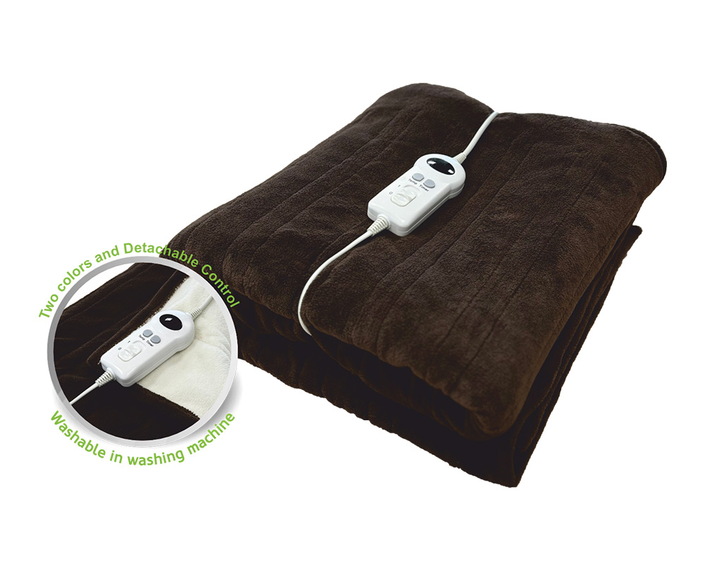 Manta Elétrica ? Comando destacável com LED display ? Lavável na máquina de lavar roupa ? 9 Níveis de temperatura ? Temporizador de 12h ? Lados com cores diferentes: Creme e castanho ? Proteção