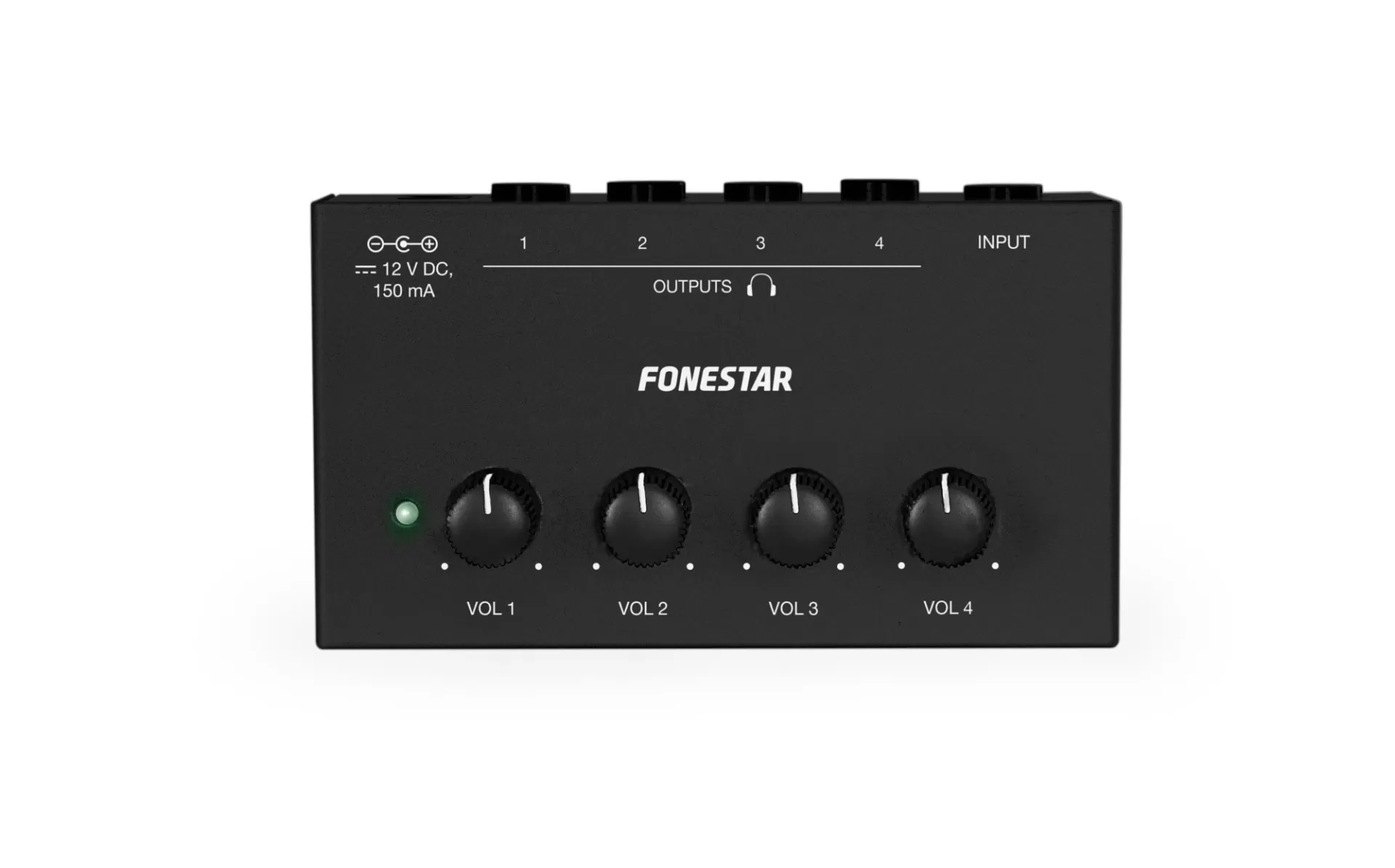 Amplificador de auscultadores Dispõe de entrada de auscultadores/linha, jack 6,3 mm e 4 saídas de auscultadores estéreo, jack 6,3 mm com controlo de volume independente de cada saída. É um equipamento compacto e leve com construção sólida e resistente, com componentes de alta qualidade que garantem uma qualidade de áudio profissional. Alimentação 12 V CC por adaptador incluído. Para aplicações de monitorização: artistas, músicos, salas de gravação e produção musical, salas de controlo, etc.