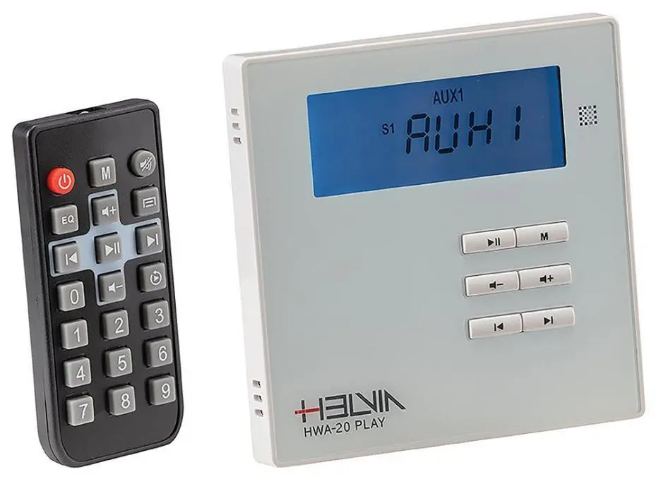 Home Amplificadores Profissionais HWA-20 PLAY - HELVIA HWA-20 PLAY - HELVIA 75,01 € Desconto de %. IVA incluído. Comprar Contactar Adicionar à wishlist Convenient and Efficient Home Music Control Center Stylish Design, User-Friendly Interface with LCD Display and remote control Built-in 2x10W stereo Class D amplifier Short-circuit, Overheating, and Overloaded Protection Multi Player Function with FM Tuner, USB, SD-Card, BT, AUX Support MP3, WAV, FLAC and other audio formats Adjustable sensitivity for AUX Input FM radio with auto or manual channel receiving, and up to 20 user-stored channels AUX Output for Multiple Unit Linking Wide Voltage Input from 100 to 240VAC, 50/60Hz Power input 100-240Vac Output power 2×10W @ 8ohm Total harmonic distortion ≤0.03% (1KHz, 1W, 8ohm) Signal-to-noise ratio >81dB Frequency response 20Hz~20kHz Sensitivity of auxiliary input 1.0V/500mV (adjustable) Audio format MP3, WAV, FLAC, etc. Bluetooth BT2.1+EDR Storage type USB, Micro SD-Card Unit Size (WxDxH) 86×86×38 mm Unit Weight 135g Marca Helvia Tags amplificador Características Partilhar