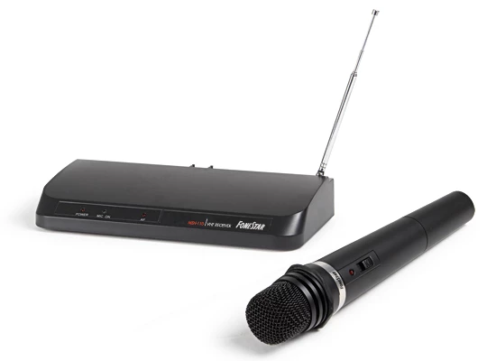 Microfone sem fios de mão VHF Oferece um som de grande inteligibilidade e garante uma transmissão de voz nítida e sem distorção, com um design compacto e de uso intuitivo e simples. Tem um canal de frequência VHF fixa a quartzo de 174 a 194 MHz (11 canais disponíveis), com controlo de volume de saída e ajuste da sensibilidade RF. Tem ainda uma saída não balanceada e outra balanceada, que permite ligar com cabos longos evitando os ruídos induzidos no cabo. Incorpora microfone sem fios de mão com cápsula dinâmica de alta qualidade. O padrão unidirecional maximiza a captação direta da voz e minimiza os ruídos e sons indiretos. Para feiras, seminários, salas de aulas, apresentações, conferências, atos religiosos, etc.