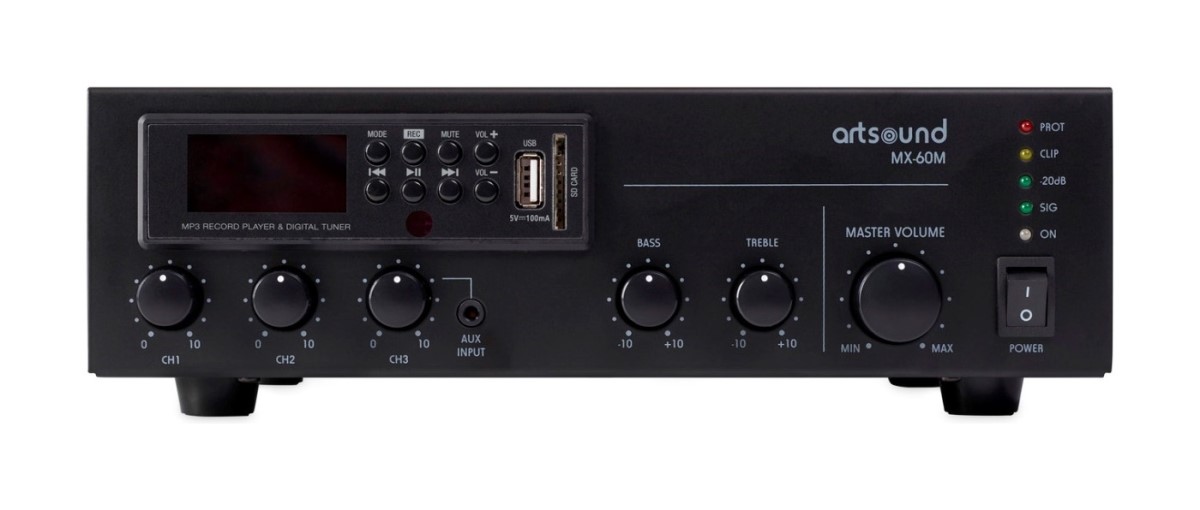 Potencia 60W- 100V/8Ω, resposta frequência 80Hz-18kHz.