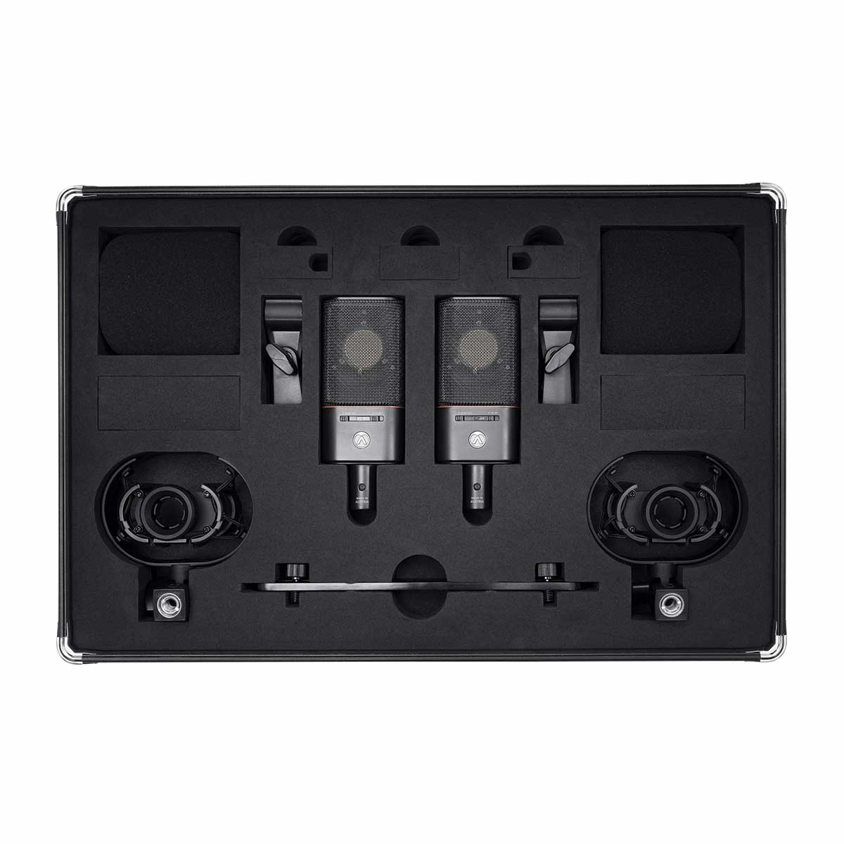 • Conjunto composto por: 2x OC18 microfones, 2x suspensão "Aranha", 2x Bola de vento, 2x Clip p/microfone, 1x Barra p/montagem stereo SB1 e mala de transporte em alumínio XL. Ideal para gravações Stereo.