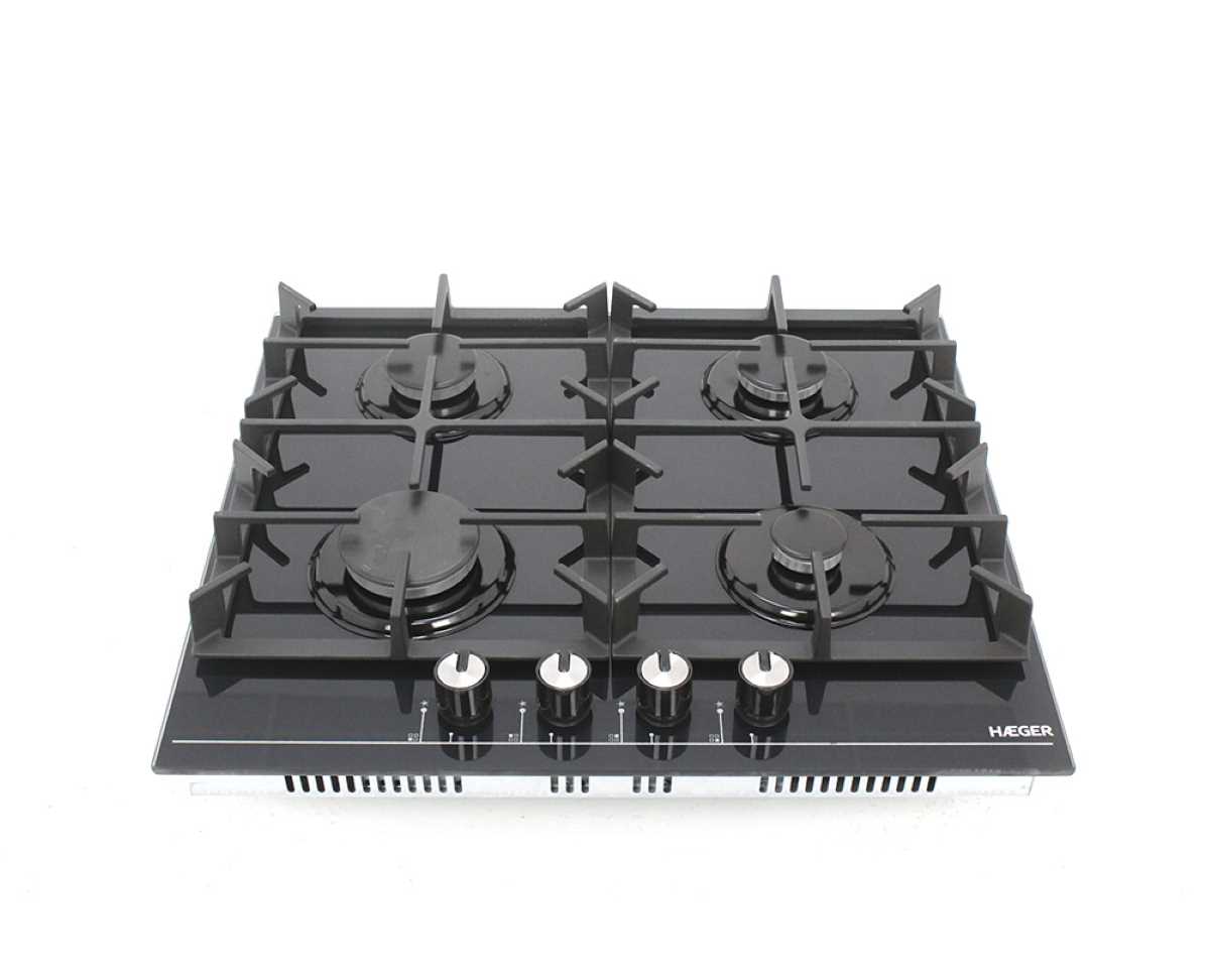 HAEGER * Placa de Gás de encastre em vidro preto de 4 bicos