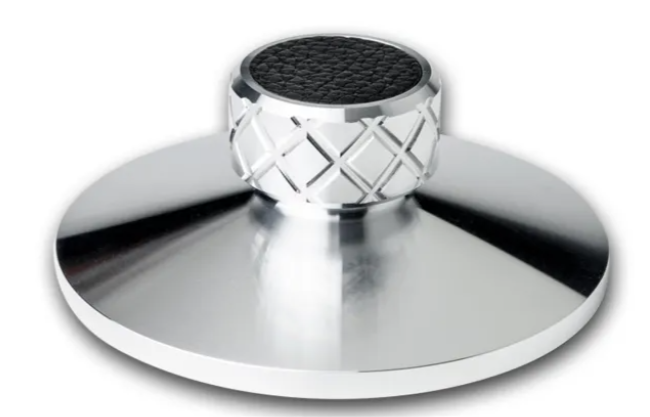 Record clamp • Sound improvement for all turntables • Reduces unwanted resonances while playback • Fast and easy mounting • Fine-adjustment of thightening force • Full metal accessory with leather coating • Diamond cut finish