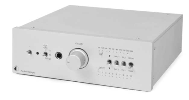 Class-A preamplifier with headphone output & built-in D/A converter (DSD capable) • Double 24bit/192kHz BurrBrown DAC chip (1792) for highest performance from one DAC • Additional second switchable 32bit/384kHz BurrBrown DAC chip for true 32/384 conversion • Pre Output XLR & RCA • Headphone amplifier can switch impedance and damping factor from front panel • Unique feature allows it to continuously change sonic character between Push-Pull (PP) to Single Ended (SE) • Dynamic range 132 dB • Asynchronous data transfer from USB 32bits/384kHz • Based on XMOS technology • Precision masterclock • Inputs: Asynchronous USB (max. 32bits/384kHz), 3x optical S/PDIF, 2x coaxial S/PDIF, AES/EBU digital, RJ45 I2S discrete differential digital input for CD BOX RS, RCA analogue, XLR analogue • Outputs: Headphone (6,3mm), Pre-Out, RCA, XLR, variable and fixed • Metal casing protects against vibration and interference • Dimensions: 206x72x200 (210)mm WxHxD (D with sockets) • Weight: 1950g Optional Upgrade: Linear power supply Power Box RS Uni 1 (or 4) for further improved sound quality
