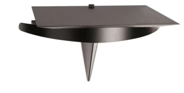 Wall mount equipment rack • Screwed steel construction, matt black finish • Lacquered MDF board, matt black • Three heightadjustable spikes to level the board • Surface area (W x D): 520 x 450mm • Overall dimensions (W x H x D): 635 x 290 x 455mm