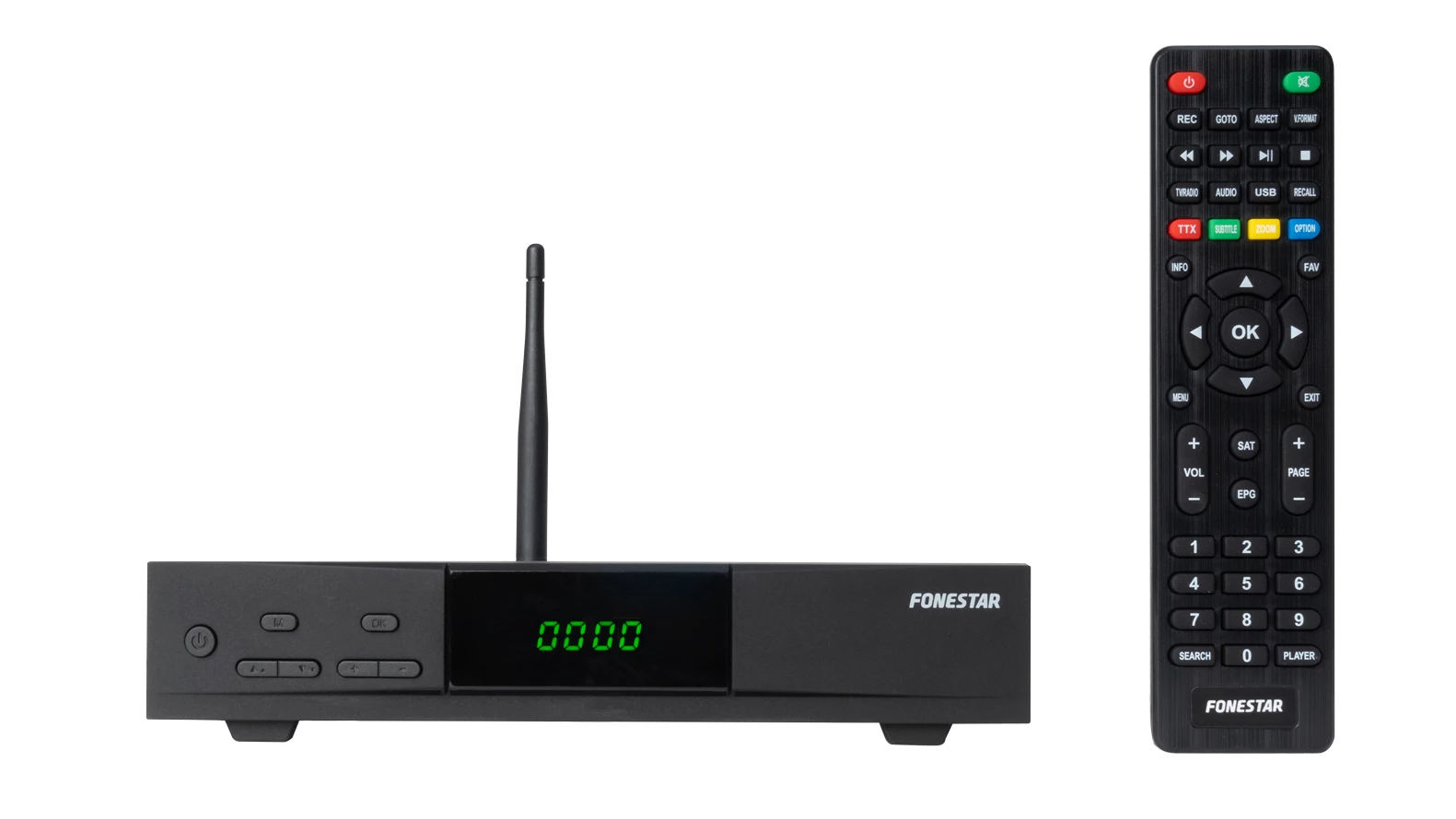 Recetor satélite DVB-S2 HD Recetor satélite DVB-S2 HD com menu multilingue, intuitivo e de fácil utilização. Conhecido como "Descodificador de TV". Tem função de gravador de vídeo (PVR com timeshift) que permite gravar e reproduzir programas de TV, uma porta USB com reprodutor multimédia de ficheiros de vídeo, áudio e imagens. Ethernet e Wi-Fi. Múltiplos formatos de saída HD: 1080p, 1080i, 720p, 576p e 480p. Permite editar canais (favoritos, ordenar, editar, mostrar em lista, mover, bloquear, mudar de nome ou apagar). Atualização de software por USB. Incorpora comando à distância. Para TV e monitores sem DVB-S2 integrado.