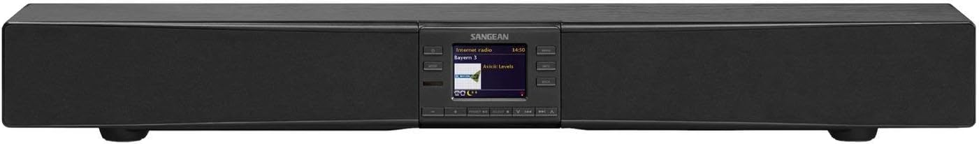 Sistema de som completo Wi-Fi (5G/2.4GHz) / Bluetooth aptX™, que melhora a experiência televisiva. Compatível com o aplicativo UNDOK™ para salas múltiplas. Rádio Internet /DAB+/FM-RDS. Compatível com Spotify Connect. Memória para 30 estações (10 iRadio, 10 DAB+ e 10 FM). Visualização dos dados do serviço. Sintonização manual e automática. Concha de madeira acusticamente sintonizada. 2 alarmes programáveis. Ecrã LCD de 3,2" com retroiluminação ajustável. Equalizador de áudio: Efeitos sonoros Normal, Música, Filme, Concerto, Fala e My EQ (controlo personalizado de graves e agudos). Ecrã TFT LCD em cor de alta resolução. 2 Entradas ópticas e uma coaxial. Saída para subwoofer. Controle remoto. L x Al x P em mm : 900 X 174 X 116