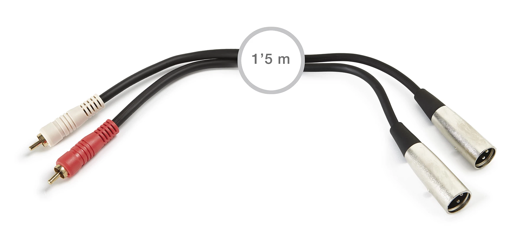 Cabo de áudio 2 RCA a 2 XLR Liga dispositivos de áudio com conetores RCA estéreo a outros dispositivos de áudio com conetores XLR estéreo. Conetores e cobertura de PVC muito resistente com comprimento de 1,5 m, garantindo uma transmissão sem perdas do sinal de áudio. Para ligações de áudio de nível de linha em misturadores, amplificadores, etc.