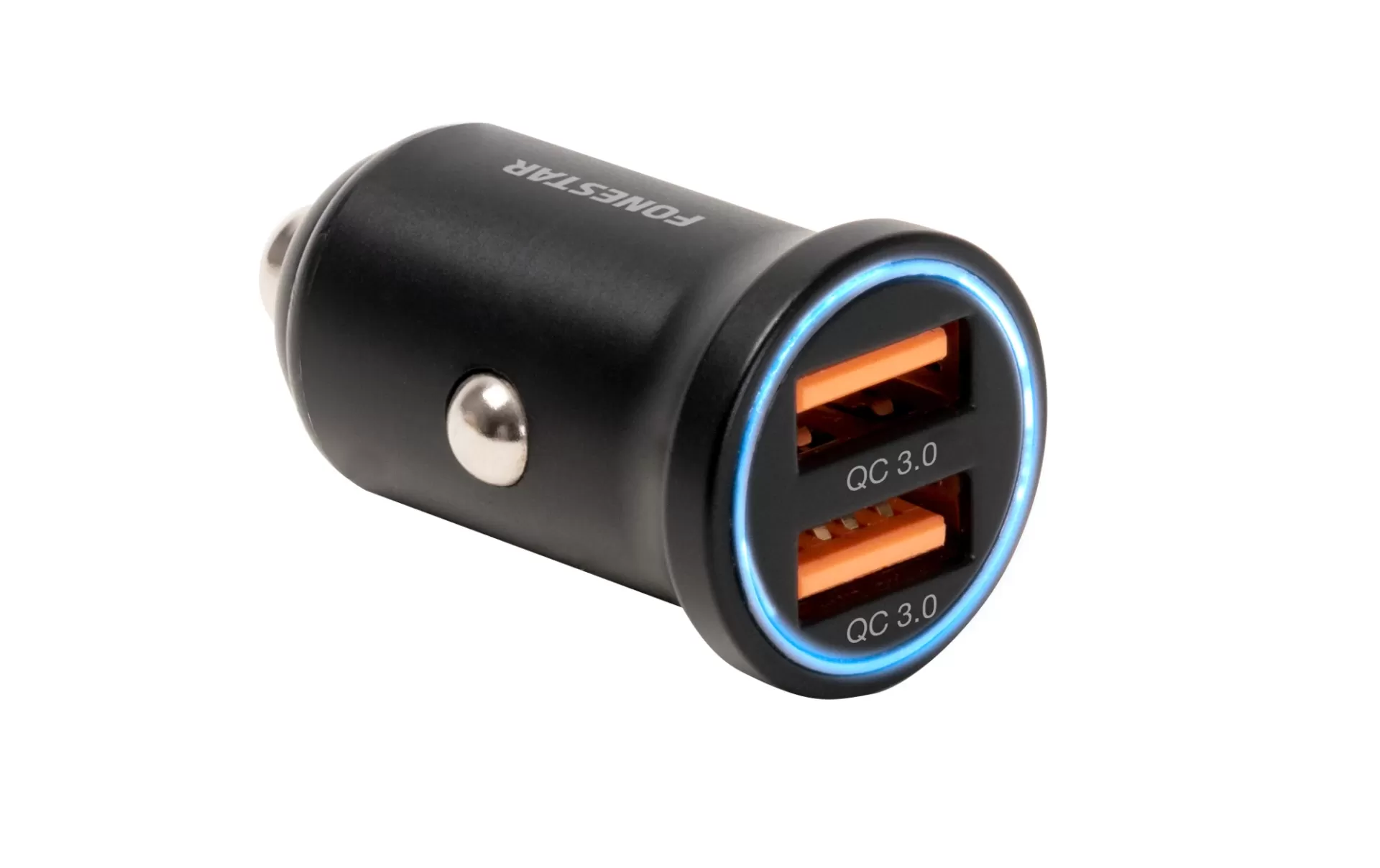 Carregador 2 x USB para automóvel Tamanho extremamente compacto e design de perfil discreto, poderá ligá-lo praticamente em qualquer veículo. Permite carregar smartphones e outros dispositivos compatíveis até 4 vezes mais rápido de forma segura com a tecnologia Quick Charge 3.0. Construído em alumínio. Para carregar até 2 smartphones, tablets e dispositivos USB.