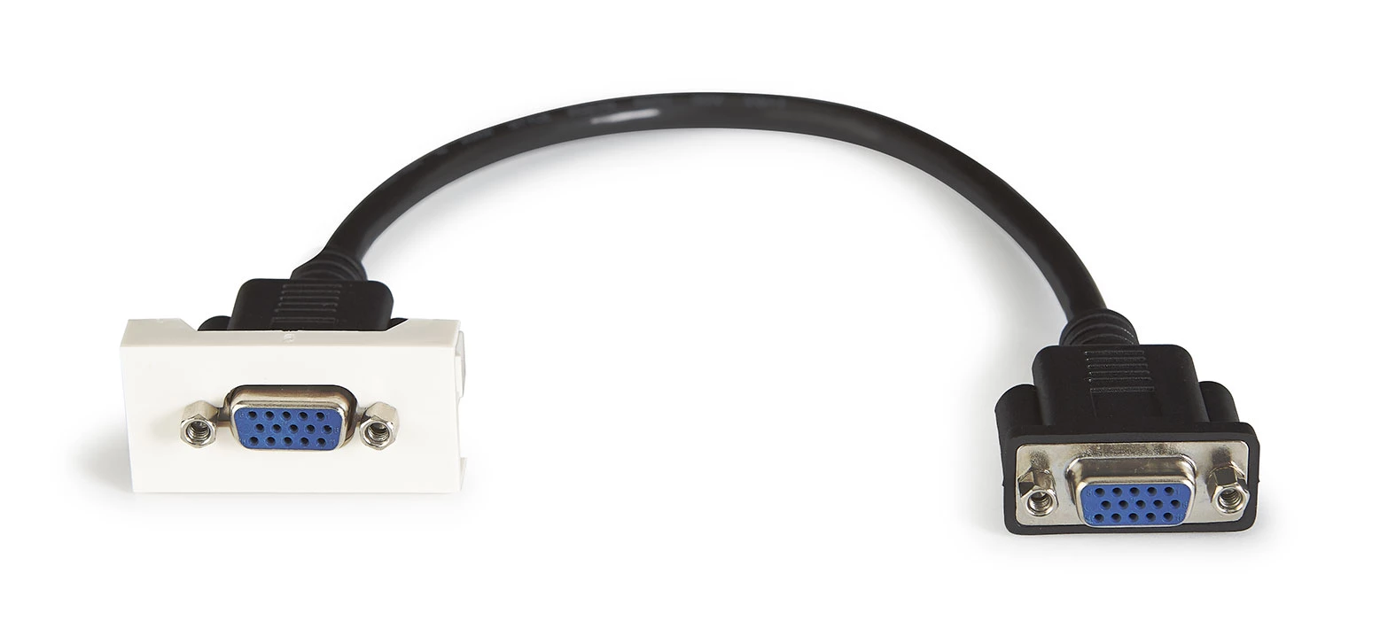 Painel de ligação VGA com cabo de 20 cm. Painéis de ligação para instalações de audiovisuais, salas de aulas, salas de conferências, etc. Sistema de painéis de ligação modulares com diferentes conetores.