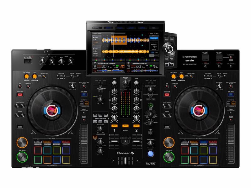 Pioneer DJ XDJ-RX3 2-channel performance all-in-one DJ system 10.1 Ecrã táctil de polegada e outras características do CDJ-3000 Layout e características de desempenho de DJM-900NXS2 Almofadas de desempenho multicoloridas 2x entradas Mic 1x AUX e 2 x Entradas Linha / Fono 2x portas USB tipo A para suportes USB 1x porta USB tipo B para modo de desempenho e exportação com rekordbox DJ 1 x Master Out 1: XLR 1 x Master Out 2: RCA 1 x Booth Out: jack estéreo de 6,3 mm 2 x saída de auscultadores: 1 x conector estéreo de 6,3 mm / 1 x mini conector estéreo de 3,5 mm Resposta de frequência: 20 Hz a 20 kHz (USB, AUX (0 dB/12 dB), MIC1, MIC2) Relação sinal/ruído: 112 dB (USB) THD: 0,003 % (USB) Hardware Rekordbox 6 activado (activação do software Rekordbox 6 através da ligação do hardware ao computador) Dimensões: Largura: 728,1 mm, Altura: 118,4 mm, Profundidade: 469,5 mm Peso: 9,3 kg Cor: Preto
